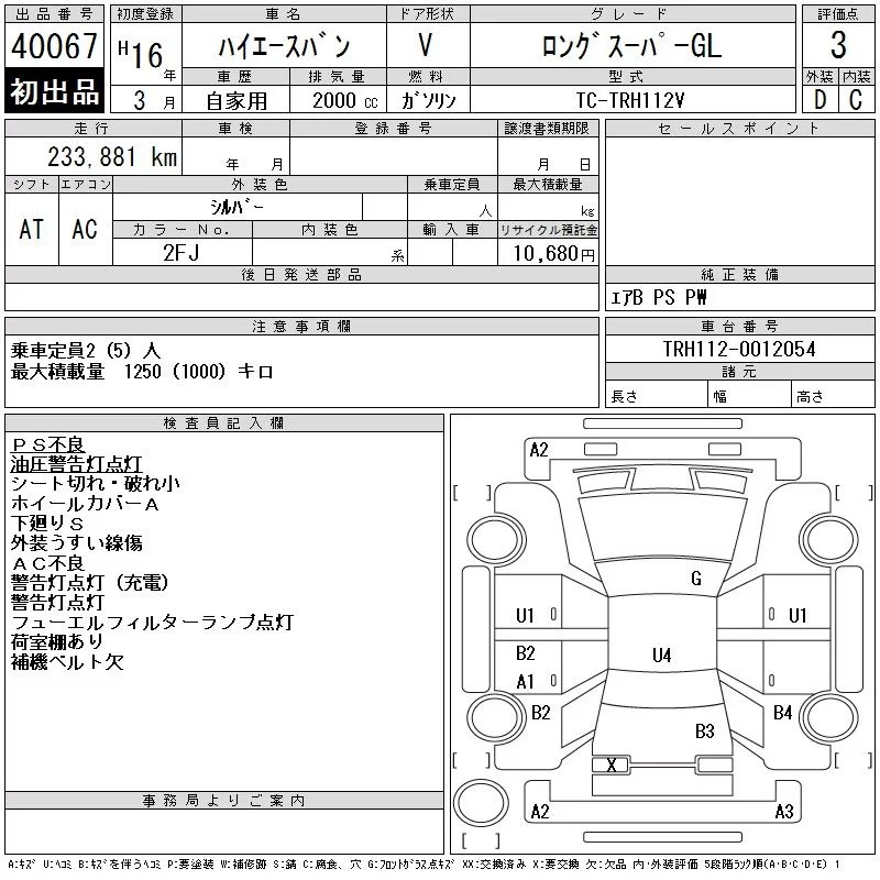 Toyota HIACE VAN с аукциона Японии CAA Chubu лот № 40067