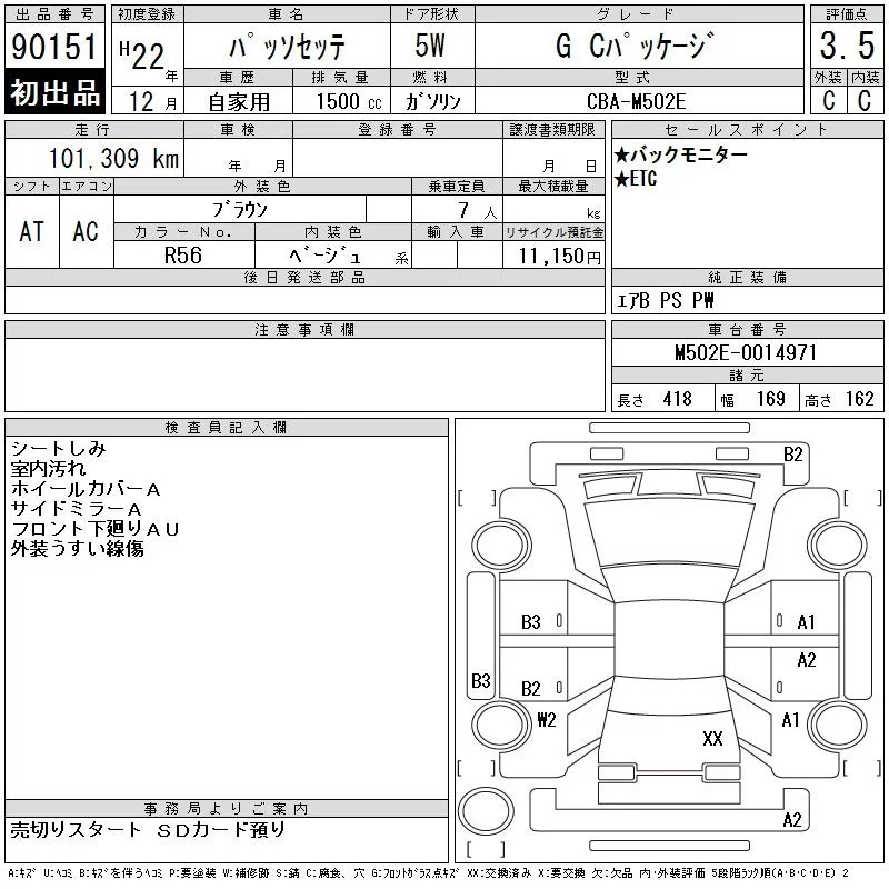 Toyota PASSO SETTE с аукциона Японии CAA Chubu лот № 90151