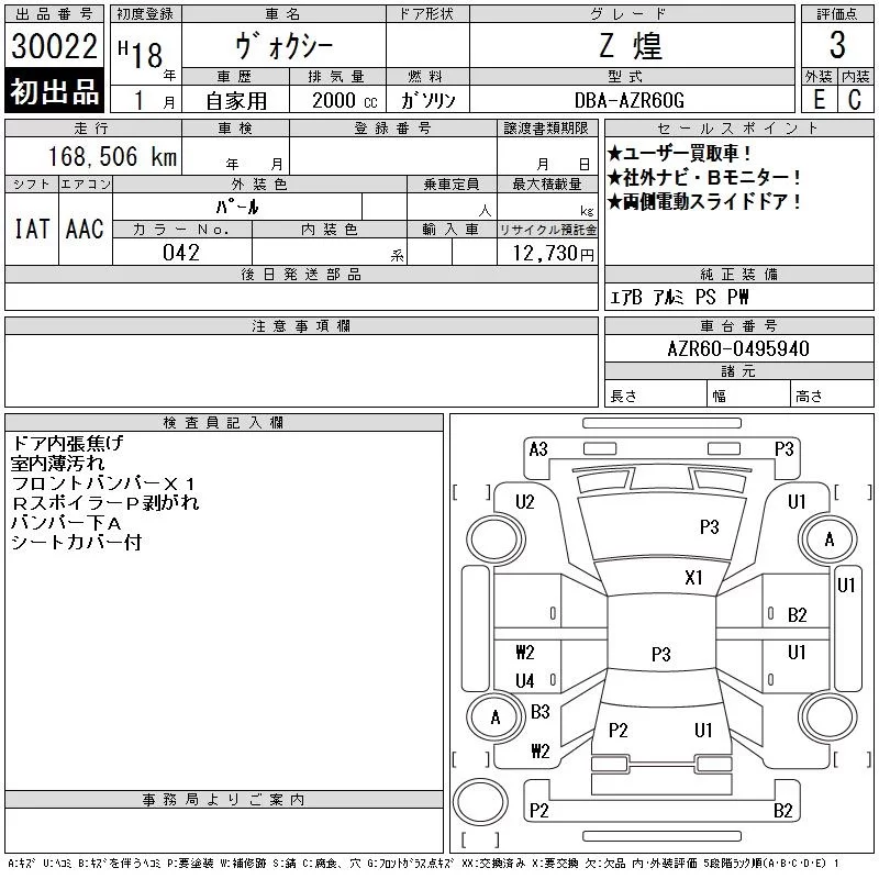 Toyota VOXY с аукциона Японии CAA Chubu лот № 30022
