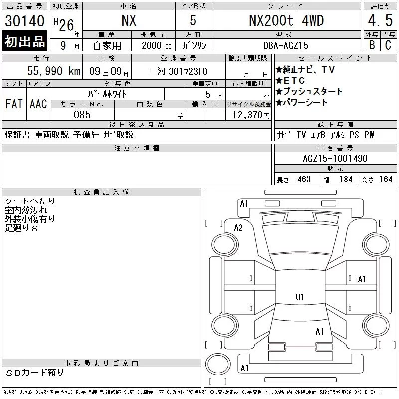 Lexus NX с аукциона Японии CAA Chubu лот № 30140