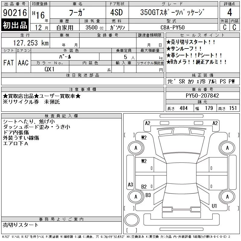 Nissan FUGA с аукциона Японии CAA Chubu лот № 90216