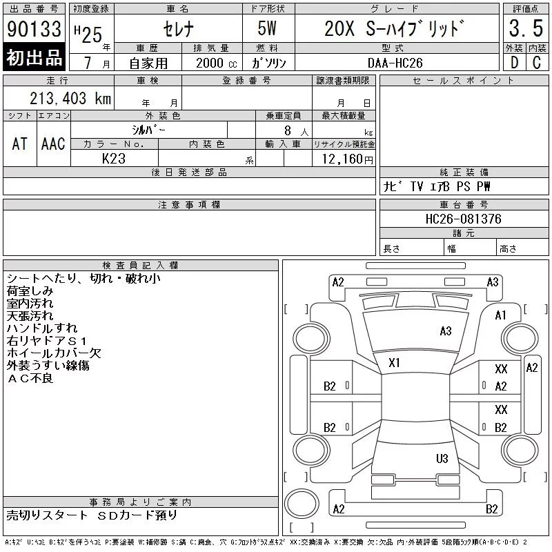 Nissan SERENA с аукциона Японии CAA Chubu лот № 90133