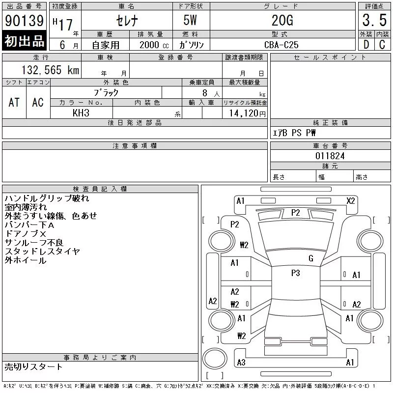 Nissan SERENA с аукциона Японии CAA Chubu лот № 90139