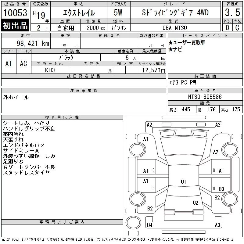 Nissan X-TRAIL с аукциона Японии CAA Chubu лот № 10053