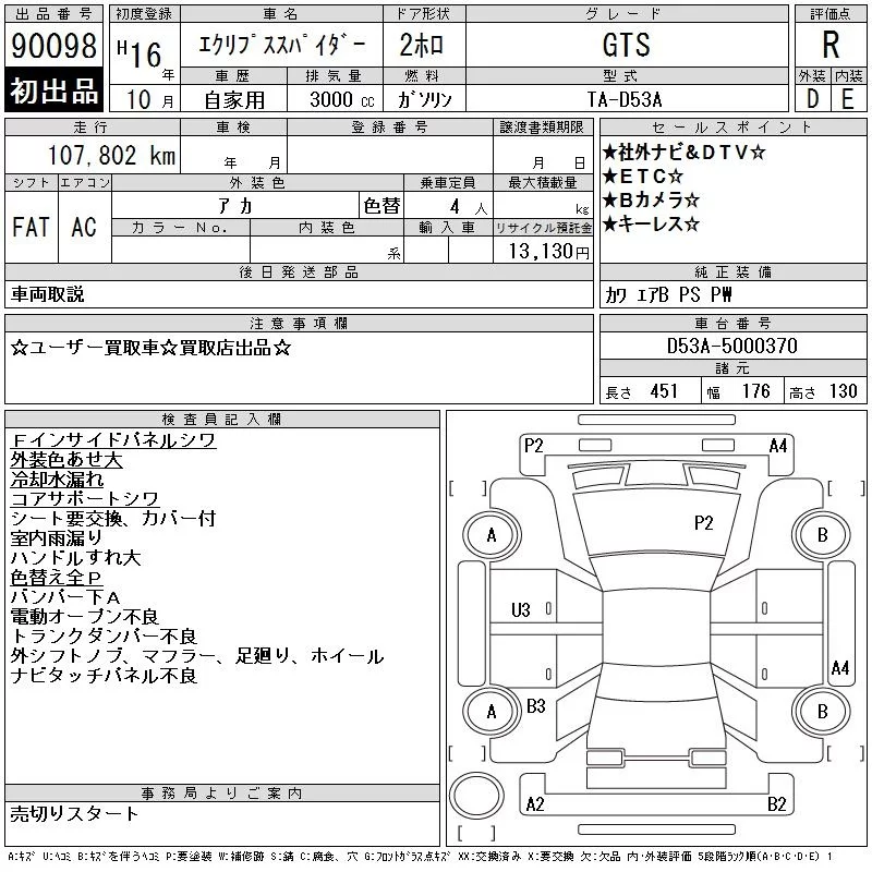 Mitsubishi ECLIPSE с аукциона Японии CAA Chubu лот № 90098