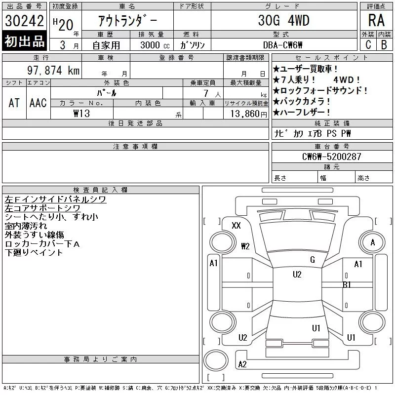 Mitsubishi OUTLANDER с аукциона Японии CAA Chubu лот № 30242
