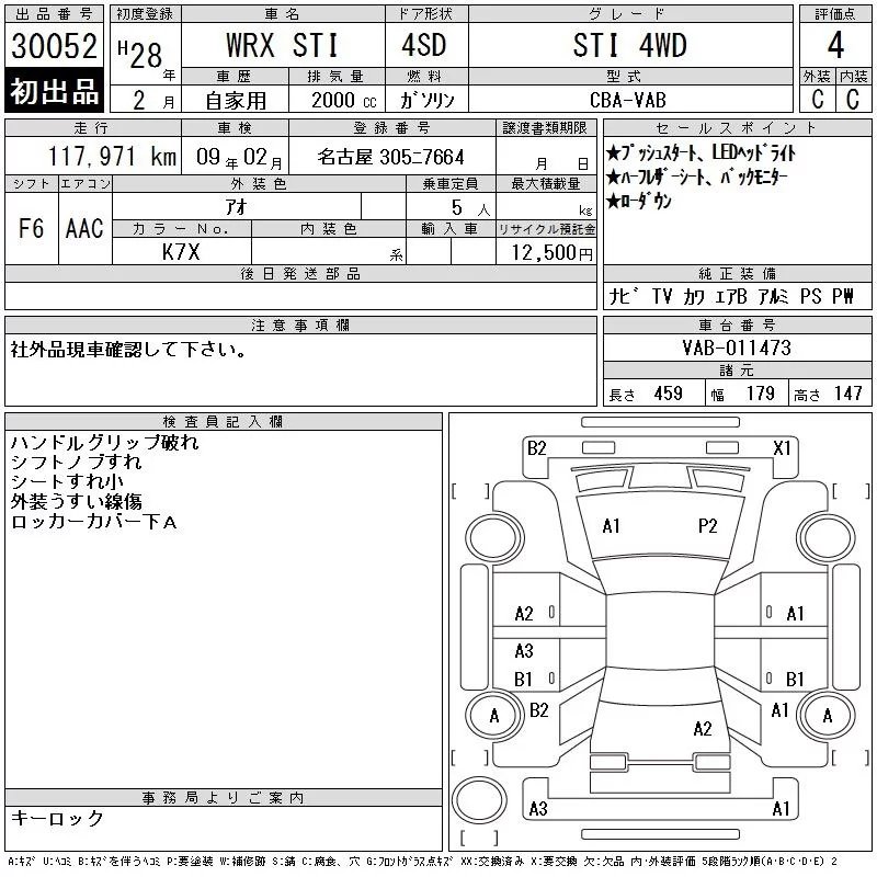 Subaru WRX с аукциона Японии CAA Chubu лот № 30052