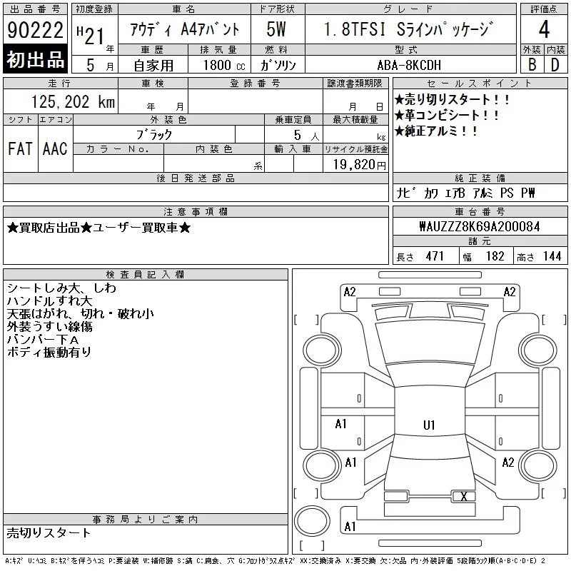 Audi A4 с аукциона Японии CAA Chubu лот № 90222