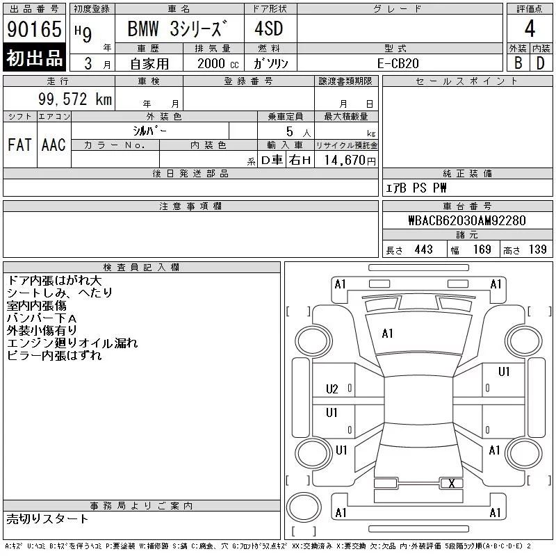 BMW 3-Series с аукциона Японии CAA Chubu лот № 90165