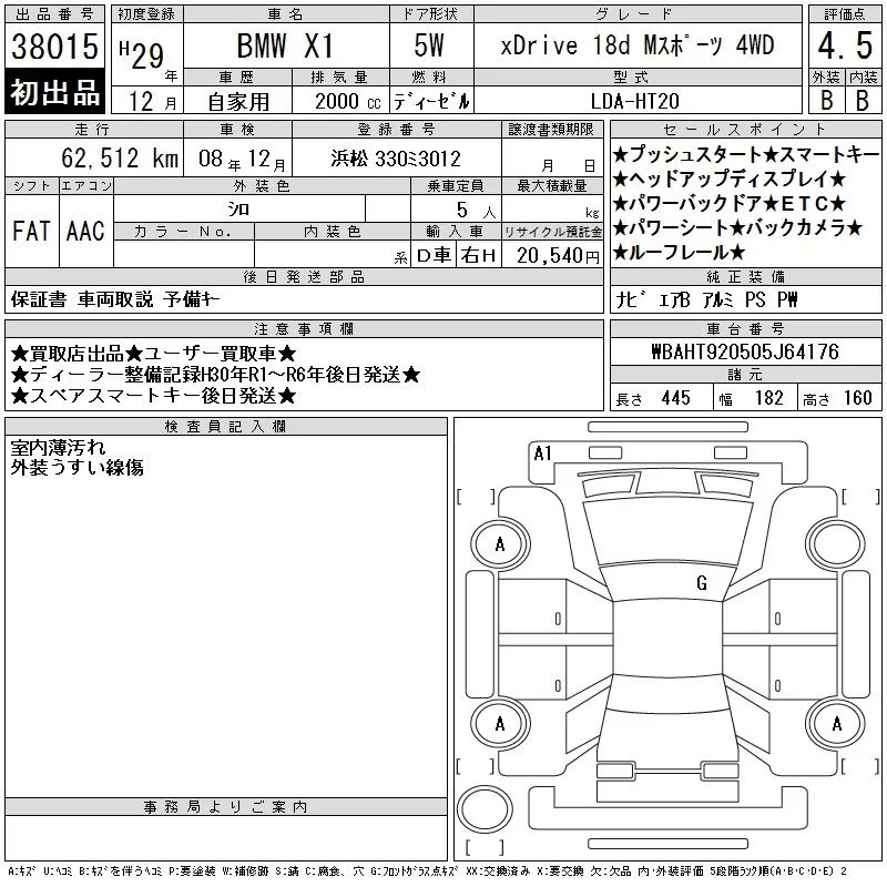 BMW X1 с аукциона Японии CAA Chubu лот № 38015