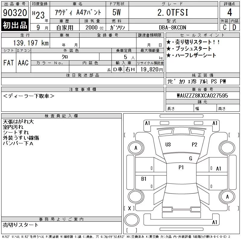 Audi A4 с аукциона Японии CAA Chubu лот № 90320