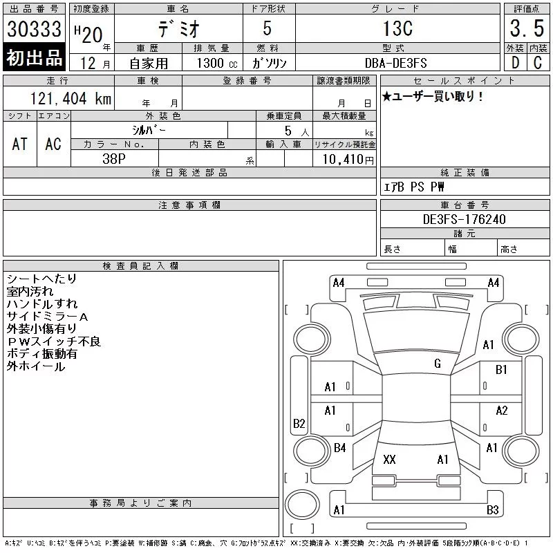 Mazda DEMIO с аукциона Японии CAA Chubu лот № 30333