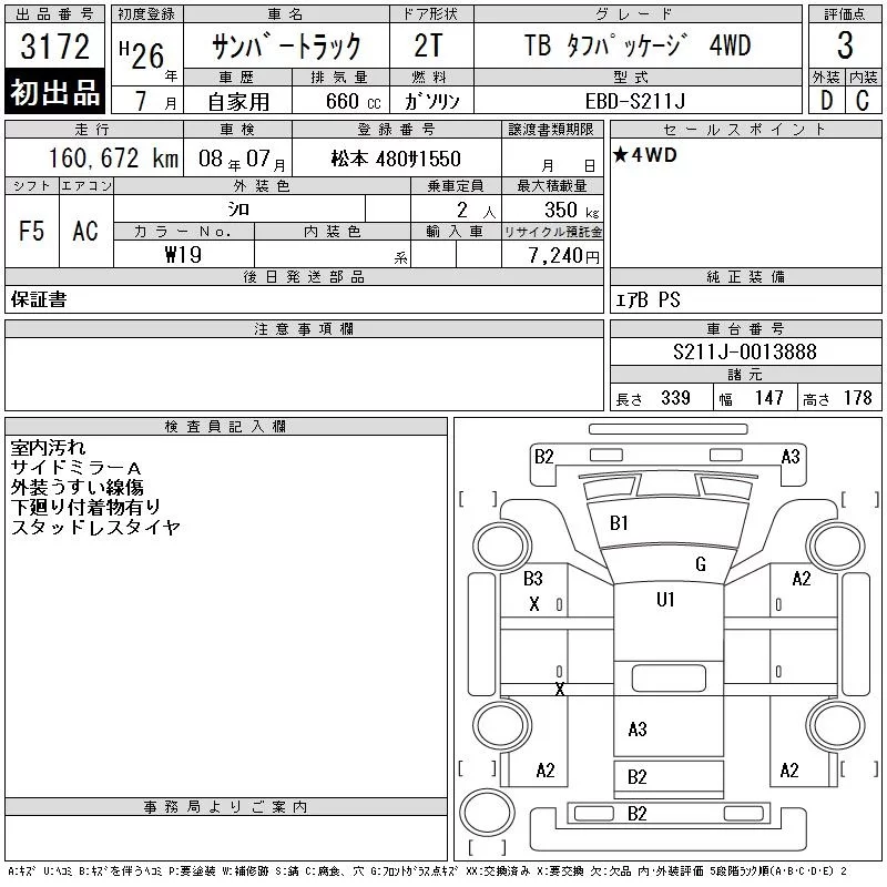 Subaru SAMBAR с аукциона Японии CAA Chubu лот № 3172