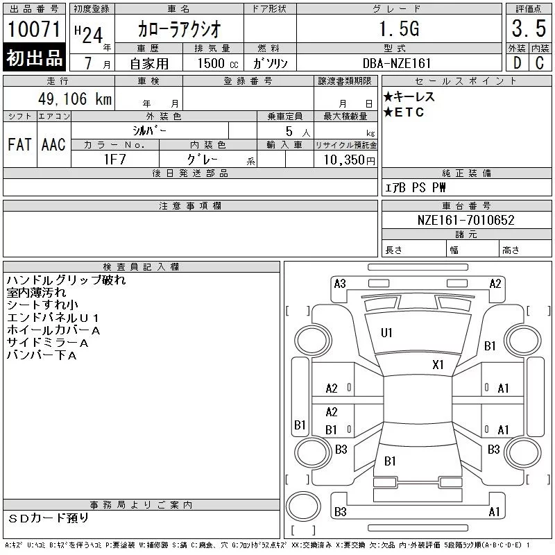 Toyota COROLLA AXIO с аукциона Японии CAA Chubu лот № 10071