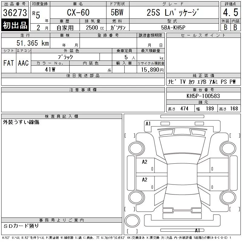 Mazda CX-60 с аукциона Японии CAA Chubu лот № 36273
