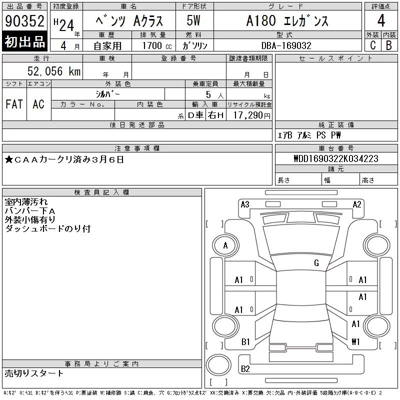 Mercedes-Benz A CLASS с аукциона Японии CAA Chubu лот № 90352