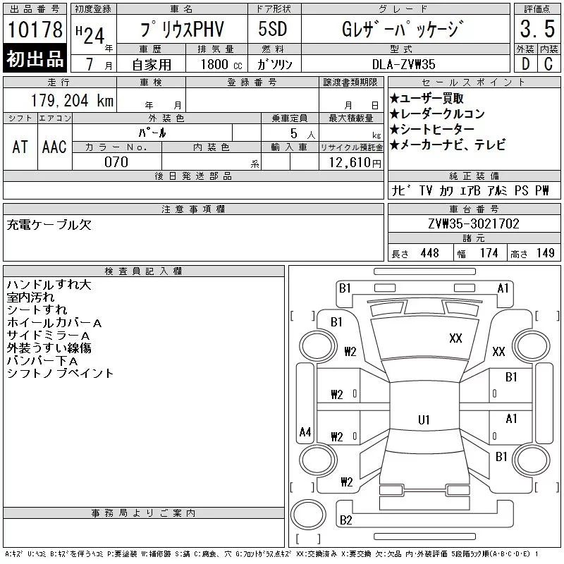 Toyota PRIUS PHV с аукциона Японии CAA Chubu лот № 10178