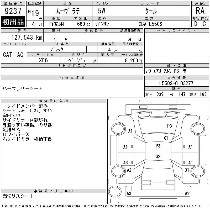 Daihatsu MOVE LATTE с аукциона Японии CAA Chubu лот № 9237