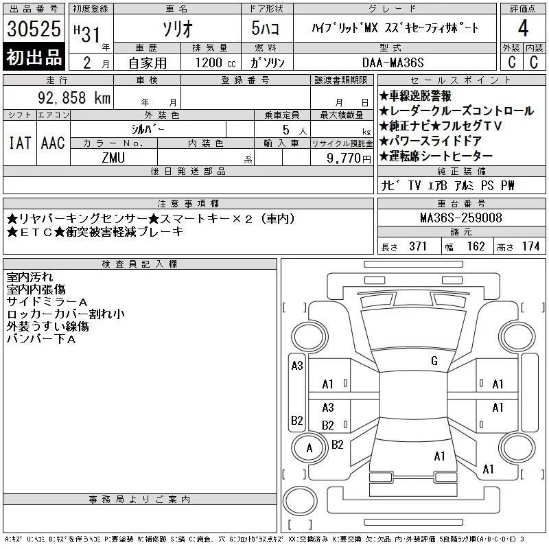 Suzuki SOLIO с аукциона Японии CAA Chubu лот № 30525