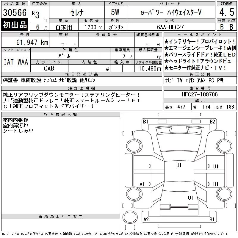 Nissan SERENA с аукциона Японии CAA Chubu лот № 30566
