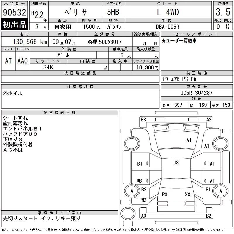 Mazda VERISA с аукциона Японии CAA Chubu лот № 90532