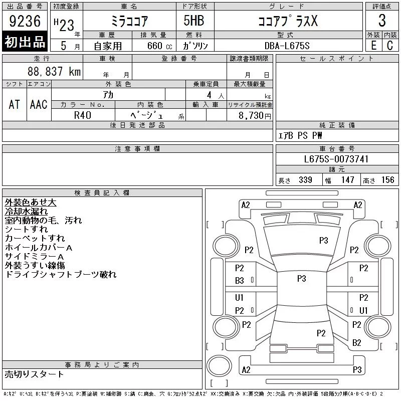 Daihatsu MIRA с аукциона Японии CAA Chubu лот № 9236