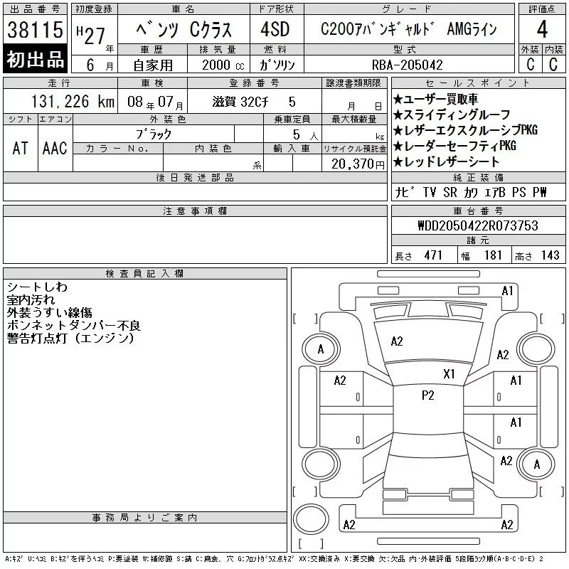 Mercedes-Benz C CLASS с аукциона Японии CAA Chubu лот № 38115