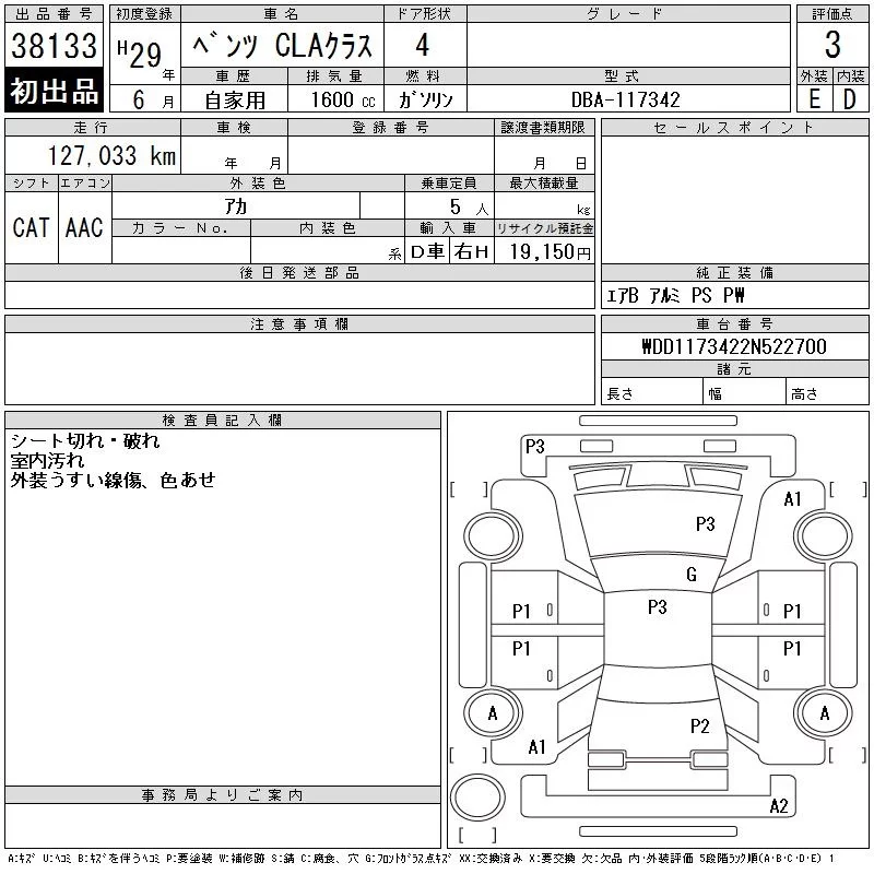 Mercedes-Benz CLA CLASS с аукциона Японии CAA Chubu лот № 38133