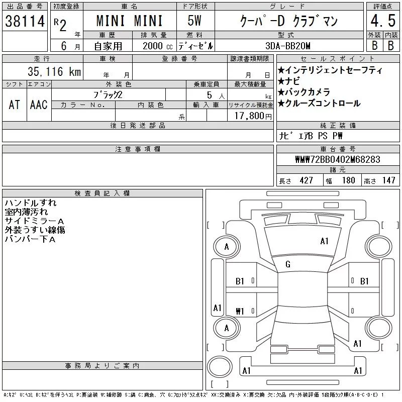 BMW MINI с аукциона Японии CAA Chubu лот № 38114