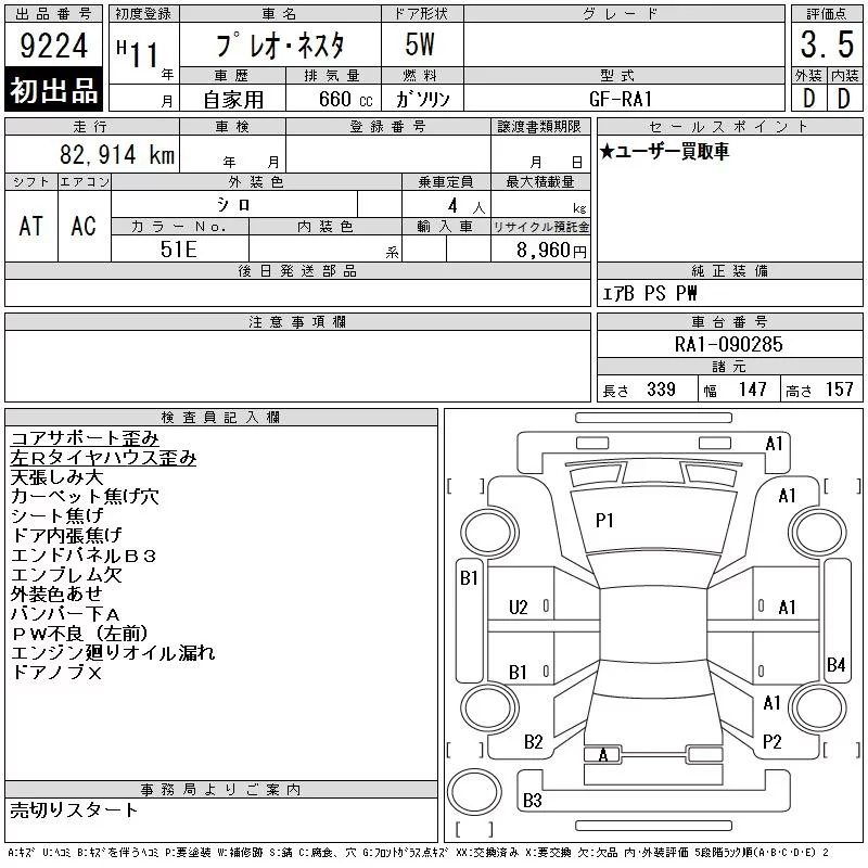 Subaru PLEO с аукциона Японии CAA Chubu лот № 9224