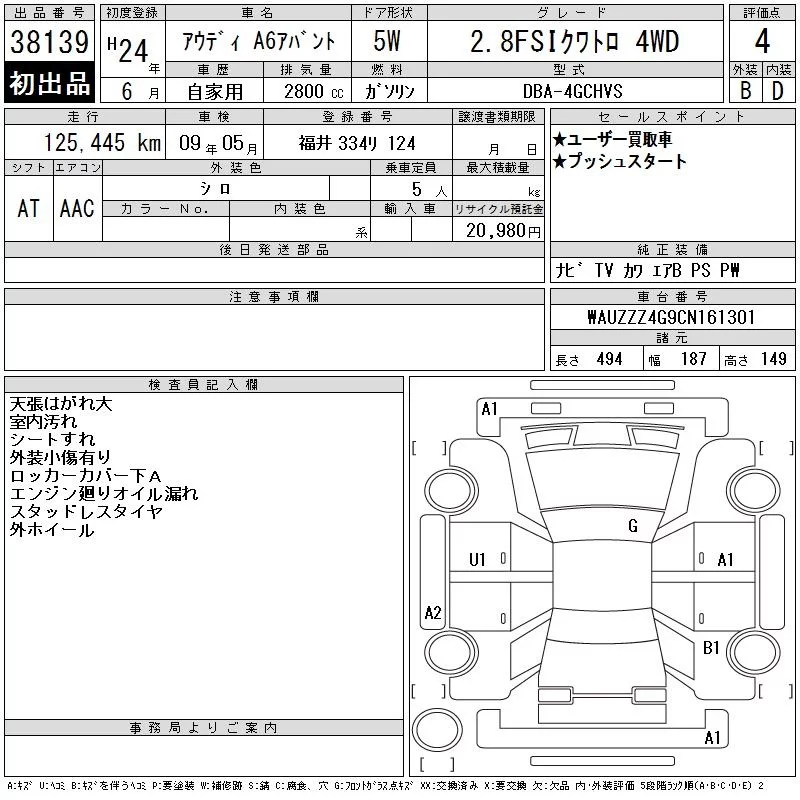 Audi A6 с аукциона Японии CAA Chubu лот № 38139