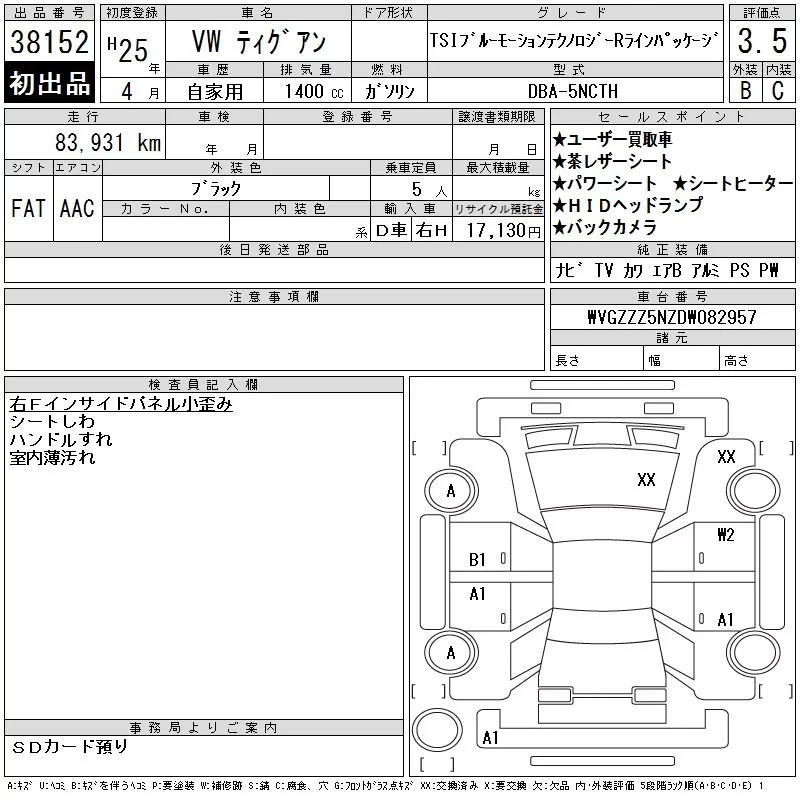 Volkswagen TIGUAN с аукциона Японии CAA Chubu лот № 38152