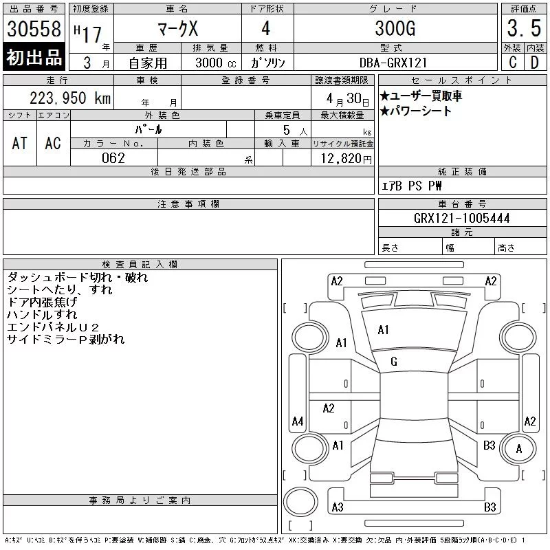 Toyota MARK X с аукциона Японии CAA Chubu лот № 30558