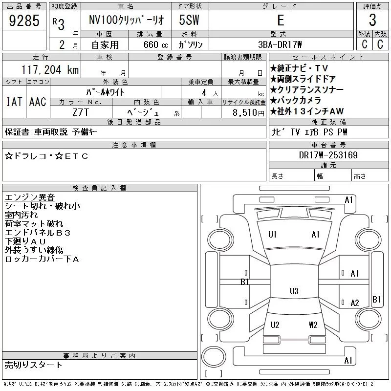 Nissan CLIPPER RIO с аукциона Японии CAA Chubu лот № 9285