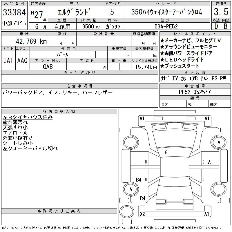 Nissan ELGRAND с аукциона Японии CAA Chubu лот № 33384