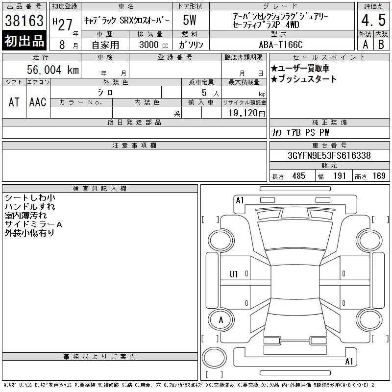 GM CADILLAC SRX с аукциона Японии CAA Chubu лот № 38163