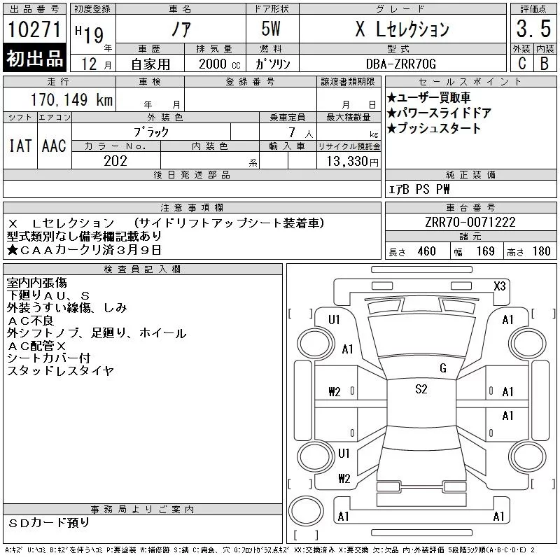 Toyota NOAH с аукциона Японии CAA Chubu лот № 10271
