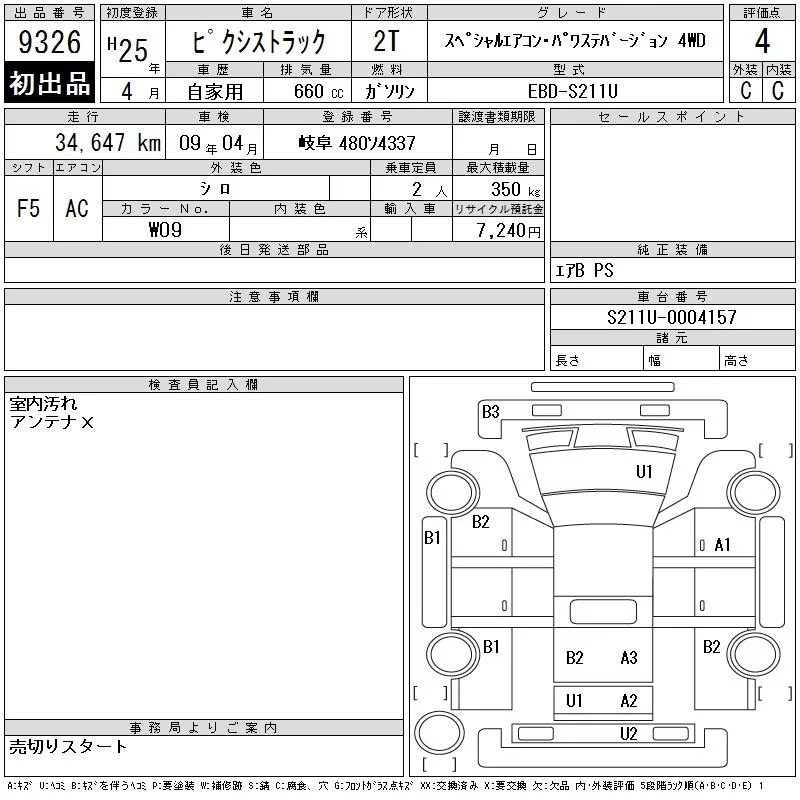 Toyota PIXIS TRUCK с аукциона Японии CAA Chubu лот № 9326