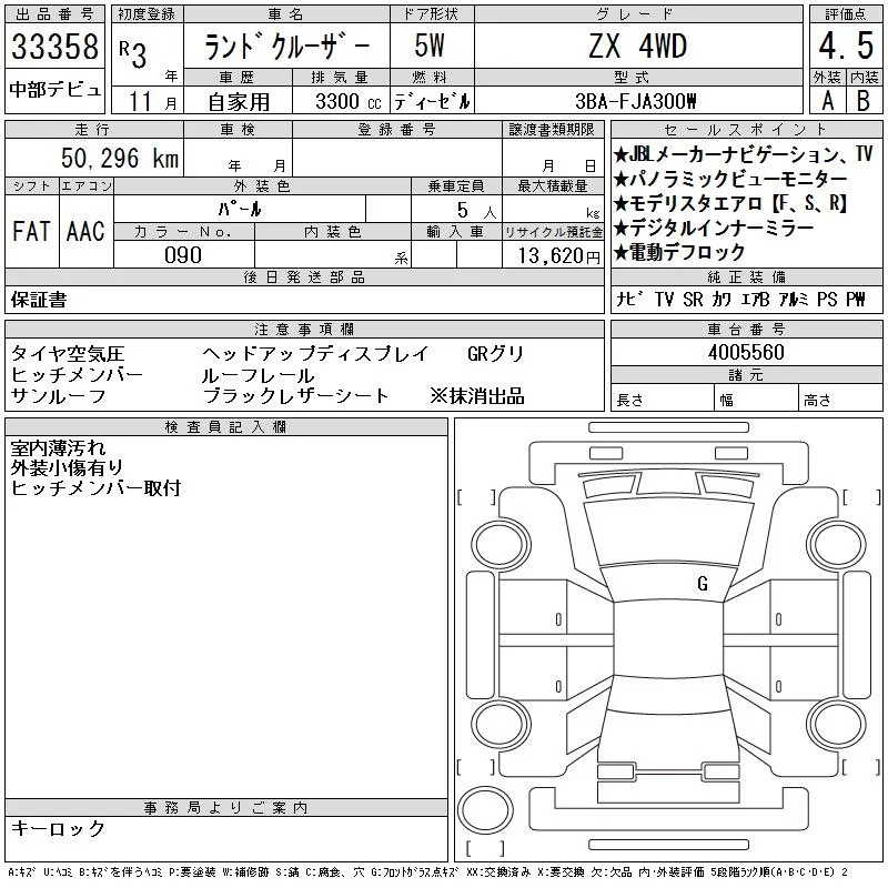 Toyota LAND CRUISER с аукциона Японии CAA Chubu лот № 33358
