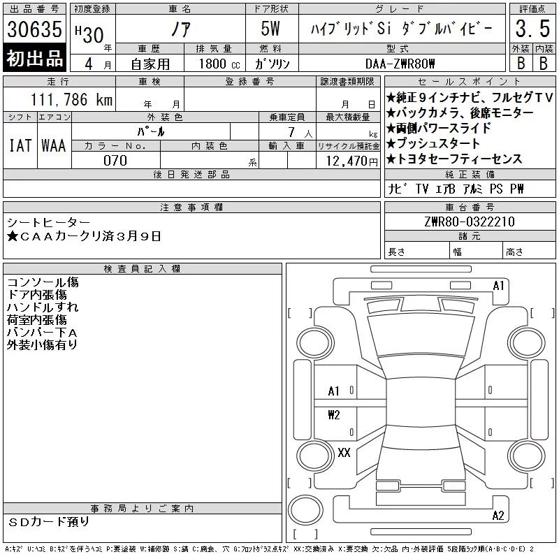 Toyota NOAH с аукциона Японии CAA Chubu лот № 30635