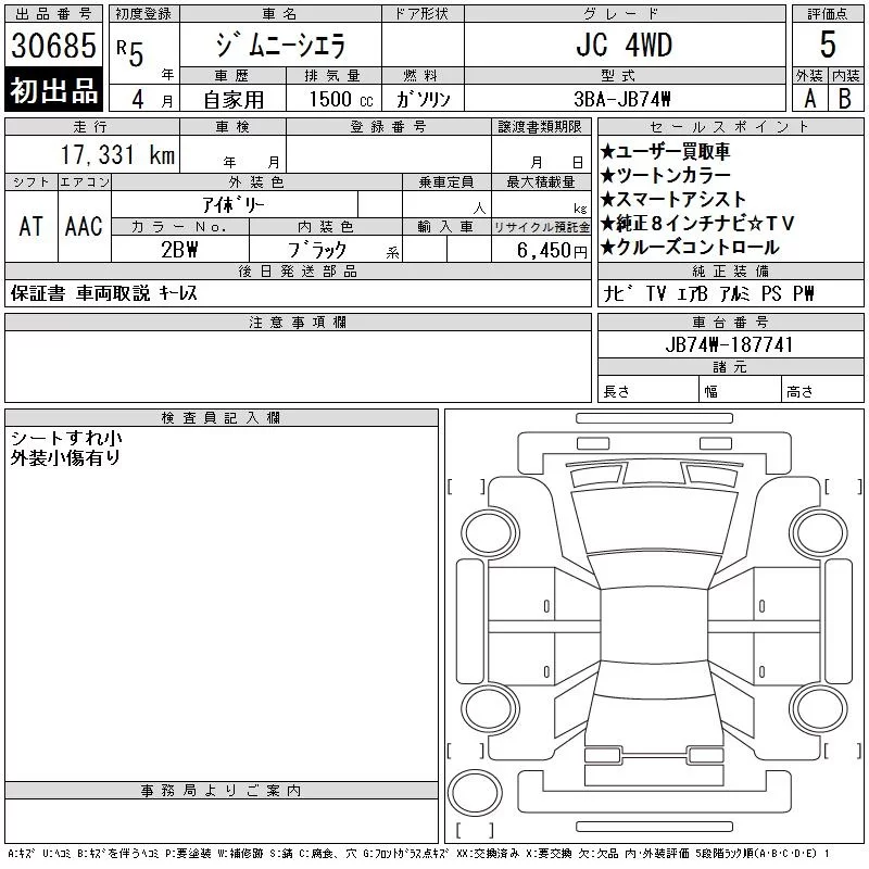 Suzuki JIMNY SIERRA с аукциона Японии CAA Chubu лот № 30685