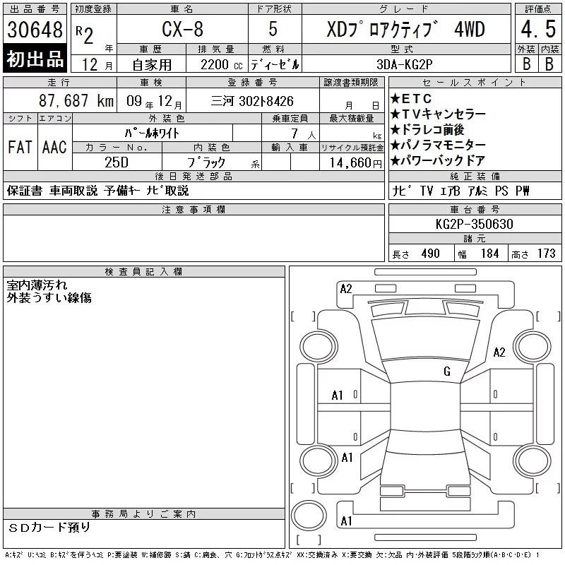 Mazda CX-8 с аукциона Японии CAA Chubu лот № 30648
