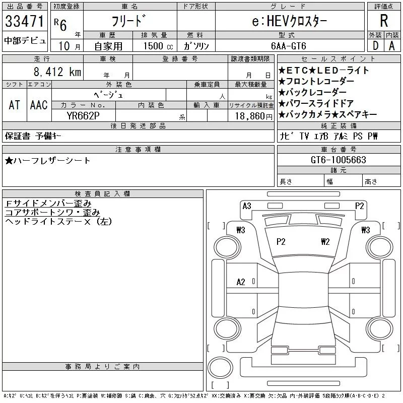 Honda FREED с аукциона Японии CAA Chubu лот № 33471