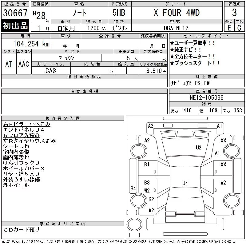 Nissan NOTE с аукциона Японии CAA Chubu лот № 30667