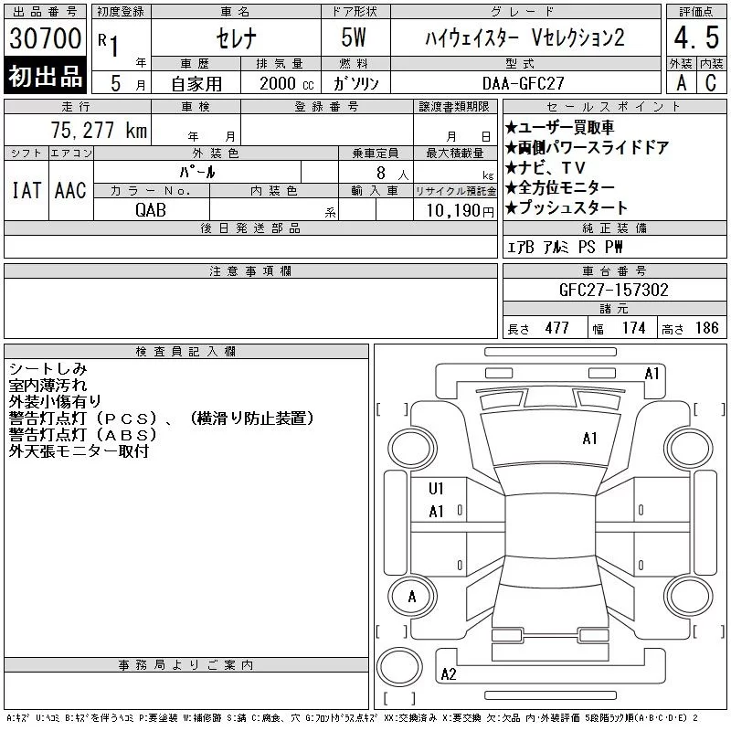 Nissan SERENA с аукциона Японии CAA Chubu лот № 30700