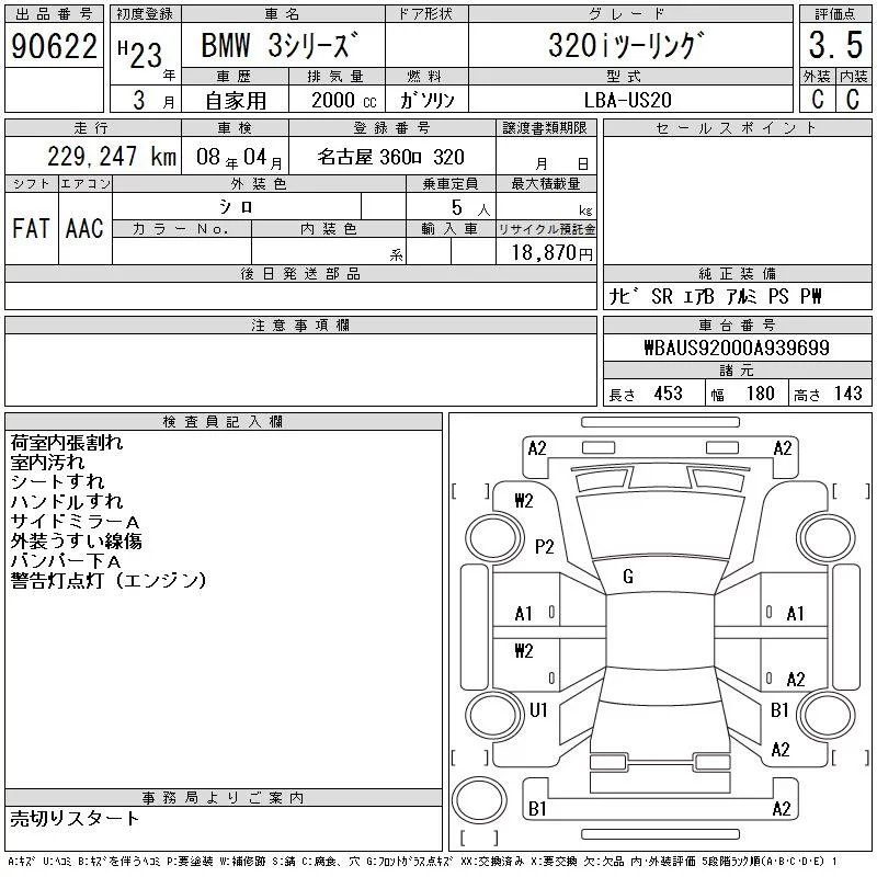 BMW 3-Series с аукциона Японии CAA Chubu лот № 90622