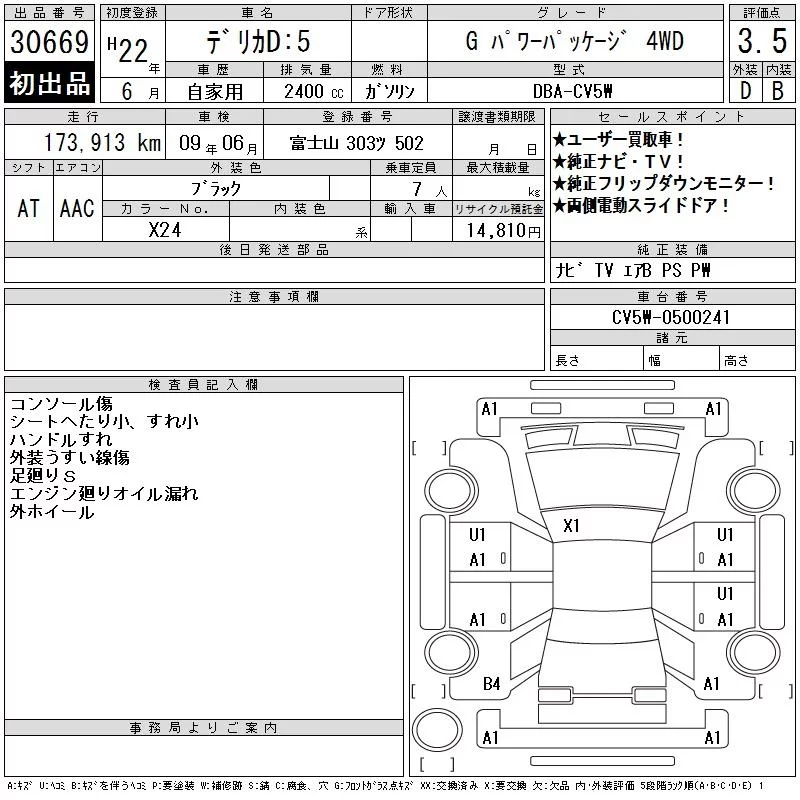 Mitsubishi DELICA D5 с аукциона Японии CAA Chubu лот № 30669