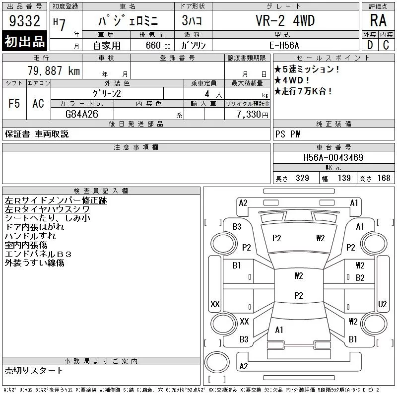 Mitsubishi PAJERO MINI с аукциона Японии CAA Chubu лот № 9332