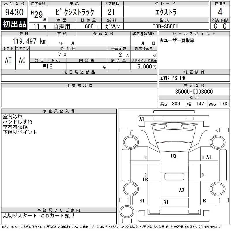 Toyota PIXIS TRUCK с аукциона Японии CAA Chubu лот № 9430