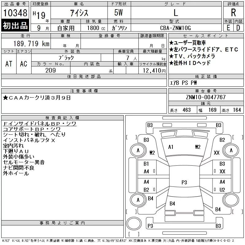 Toyota ISIS с аукциона Японии CAA Chubu лот № 10348